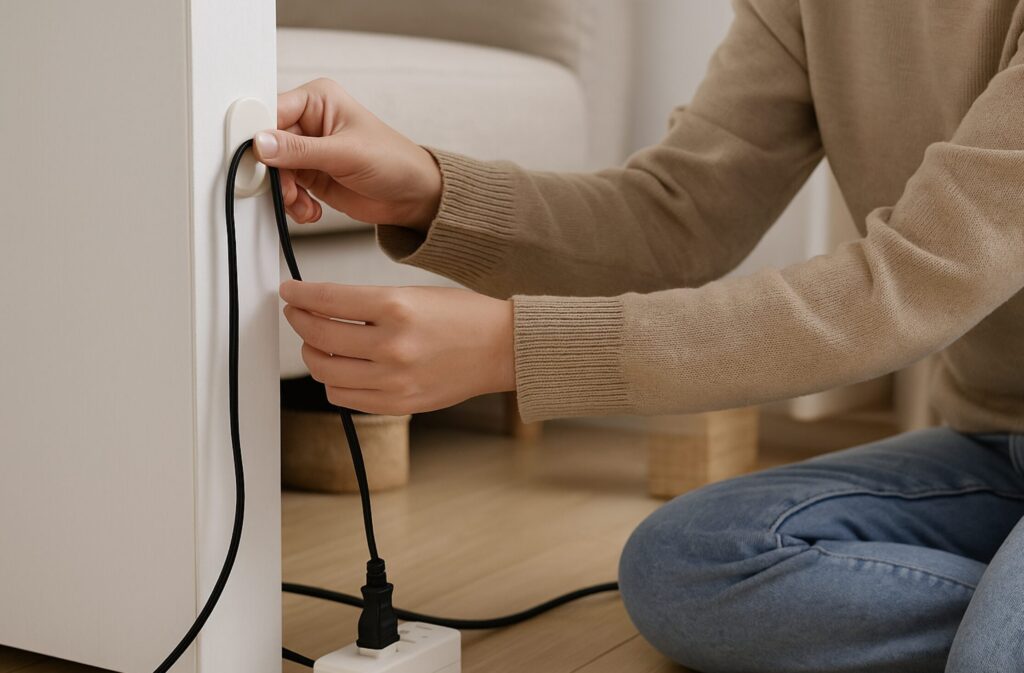 加えて、家具の裏側やコーナーを活用してコードを通すだけでも、見た目の印象はかなり変わります。コードが視界に入らないよう配置することで、空間全体が整って見え、掃除の際も邪魔になりません。家具の脚に沿って配線を通したり、家具の背面にクリップで固定したりすれば、見た目もすっきりとし、安全性も高まります。