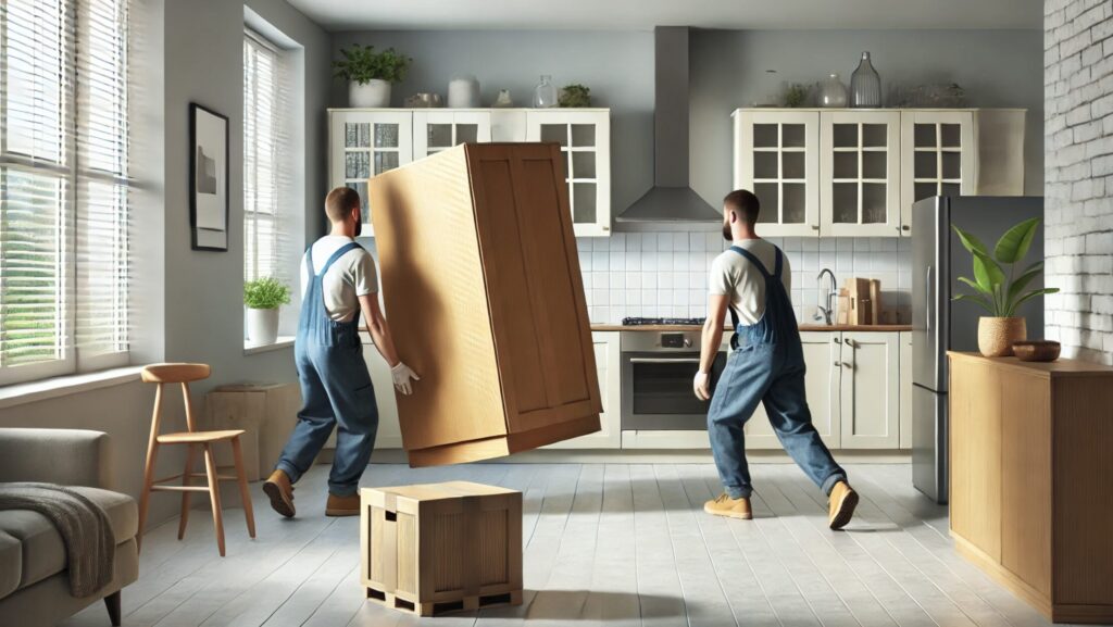 この方式には、搬入時の通路の幅や階段、ドアのサイズなどに関わる問題を回避できるという大きな利点があります。特に大型の食器棚や収納家具の場合、完成品での搬入は難しいケースが多く、パーツ状態で搬入し現地で組み立てる方が合理的です。